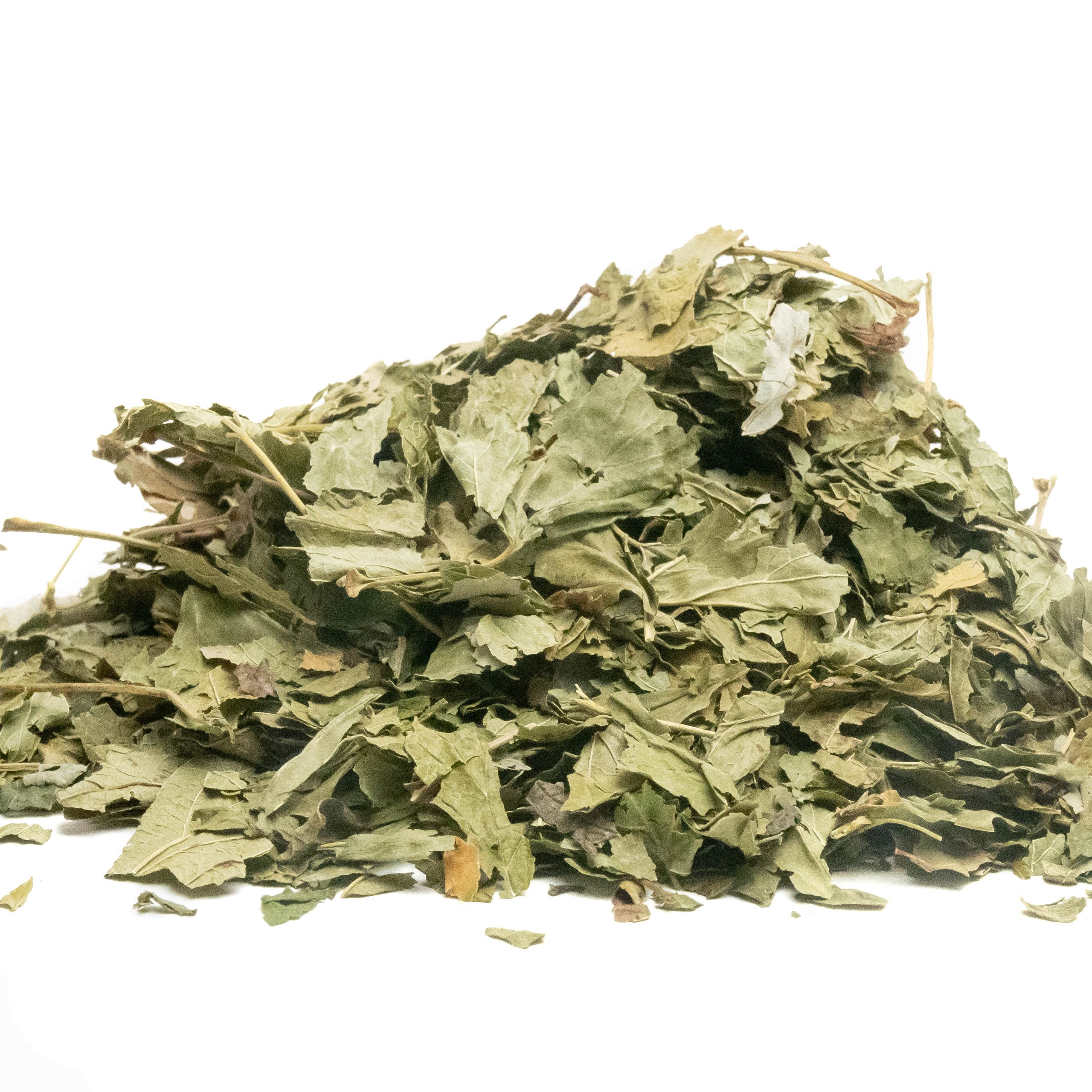 Composition : dehydrated whole blackcurrant leaves, 100% natural.