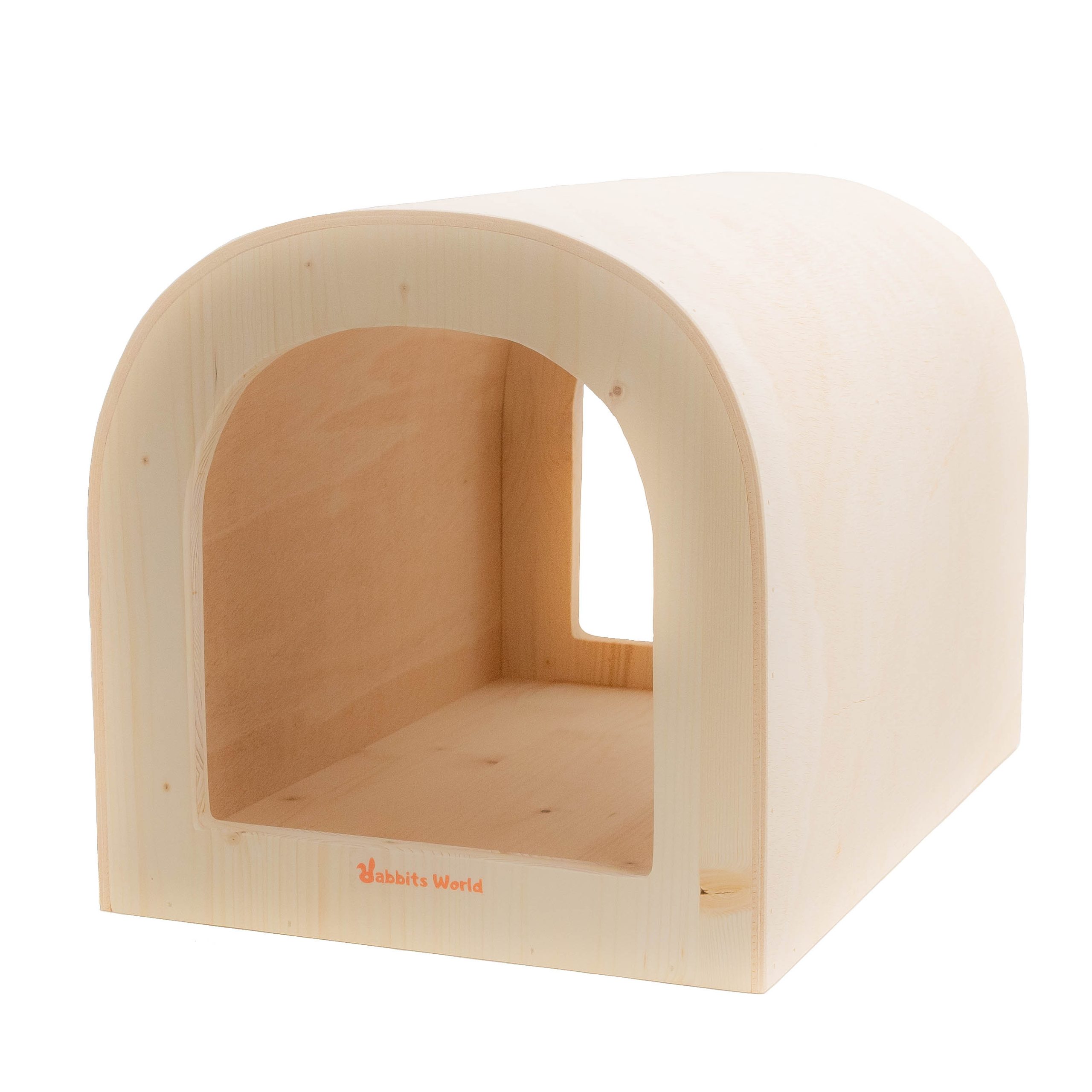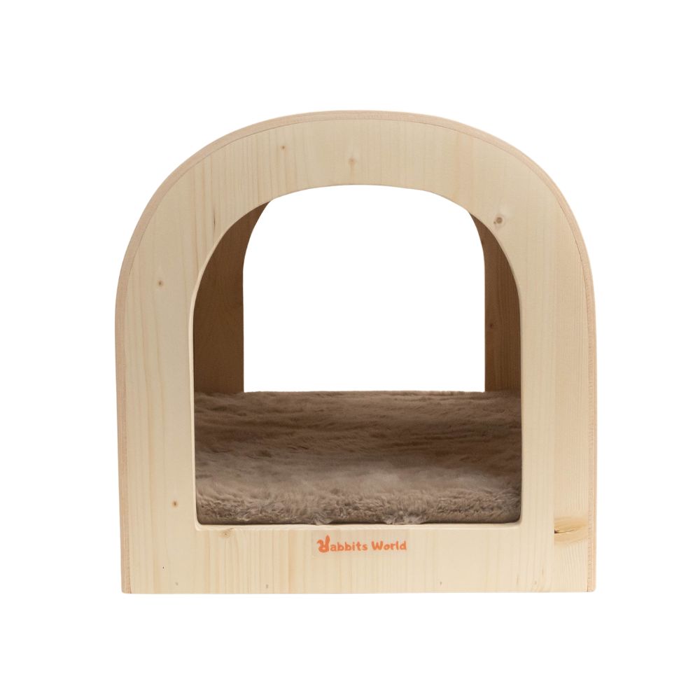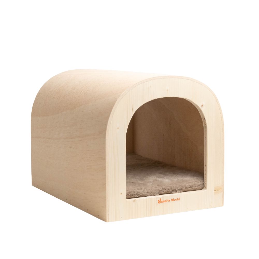The Caravan was born from a design. The idea ? The desire to create a spacious, stylish, aesthetically pleasing, and reassuring shelter, capable of accommodating a Flemish Giant rabbit, a pair of dwarf rabbits in love… or a demanding little rabbit who likes to stretch out like Teddy. Its unique feature ? Curved wood forming a soft, enveloping arch. A true technological and aesthetic promise. Its 3-ply spruce structure gives it a soft, enveloping silhouette reminiscent of a modern cocoon. A true little architectural refuge crafted by our local carpenter for discerning rabbits. The result: a minimalist, warm, and totally unique shelter – 100% Rabbits World.