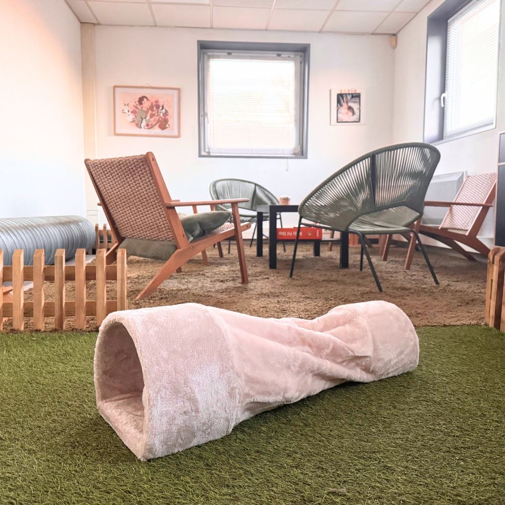 Flocon et Luna adorent leur tunnel. J’avais peur qu’il le trouve petit car avant j’en avais un beaucoup plus grand mais au contraire, il est tellement confortable pour si cacher qu’ils l’ont de suite adopté.
