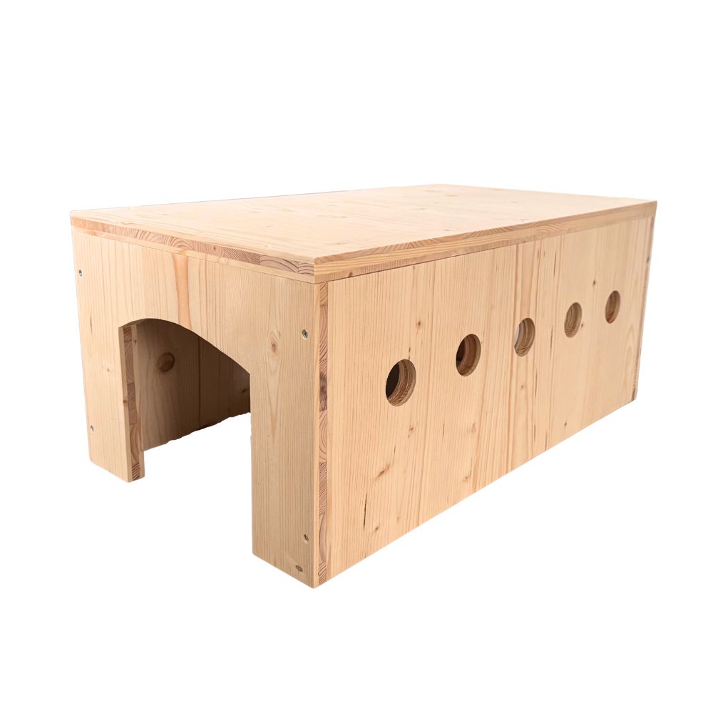 très belle qualité, particulièrement esthétique, mon lapin y passe en trombe ou s’y cache au grès de sa fantaisie; Il lui arrive aussi de s’y percher pour surveiller sa garenne bien sûr!